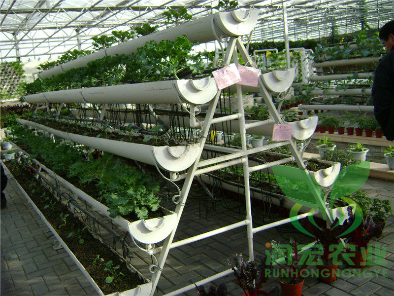 A字架栽培系統(tǒng)由支架、固定式栽培槽和供水裝置組成,采用開放式的供水系統(tǒng),優(yōu)點是產品結構呈A字型,充分的利用空間,便于作物的采光及種植采摘;并能根據(jù)實際情況定時更換基質肥。