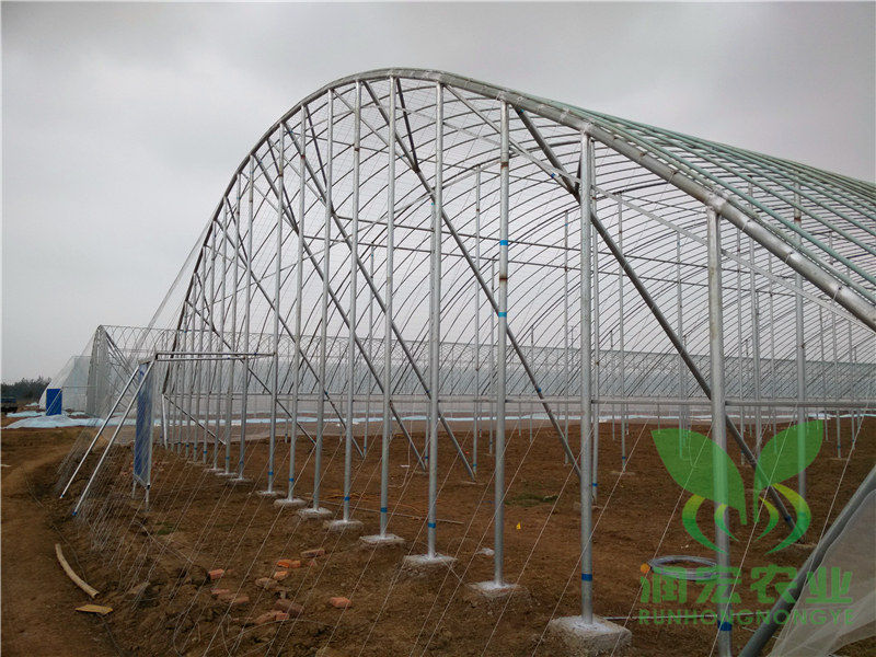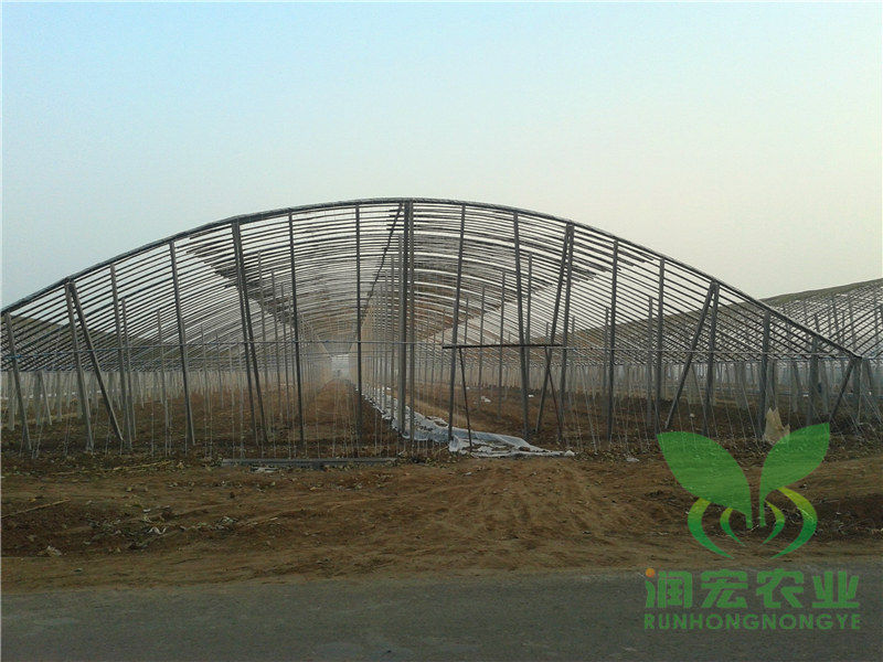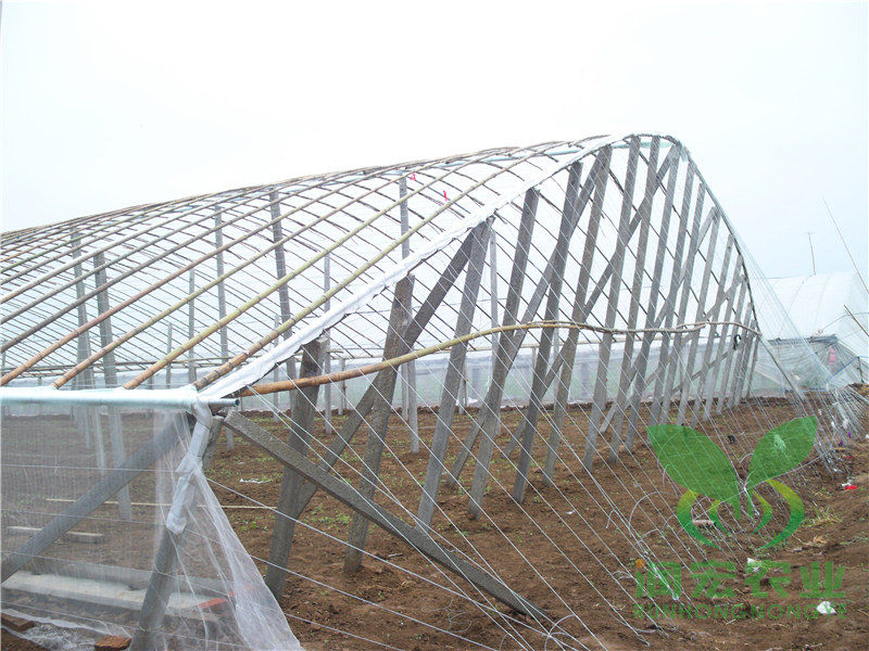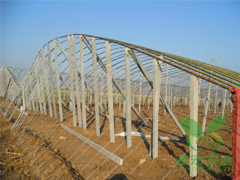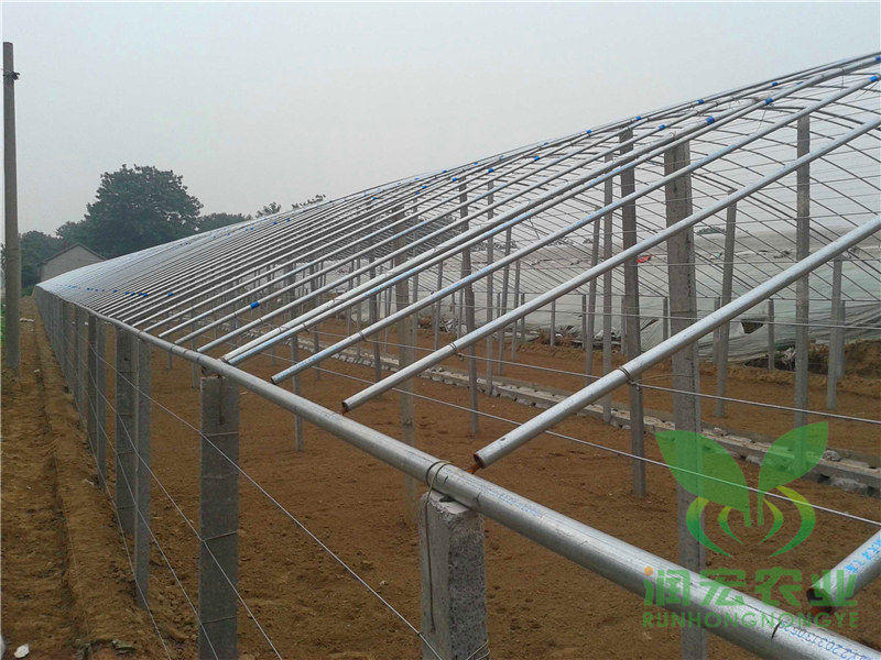 大跨度立柱式拱棚溫室采用專用砼柱做支撐柱體,鍍鋅鋼管與厚壁竹竿做棚面骨架,造價(jià)低廉,堅(jiān)固耐用,一般適合春秋季反季節(jié)蔬菜種植及養(yǎng)殖棚。建造跨度一般在12-23m,建設(shè)高度在3-6m。在北方地區(qū),可在棚內(nèi)加設(shè)二膜或三膜,以增加夜間溫度。