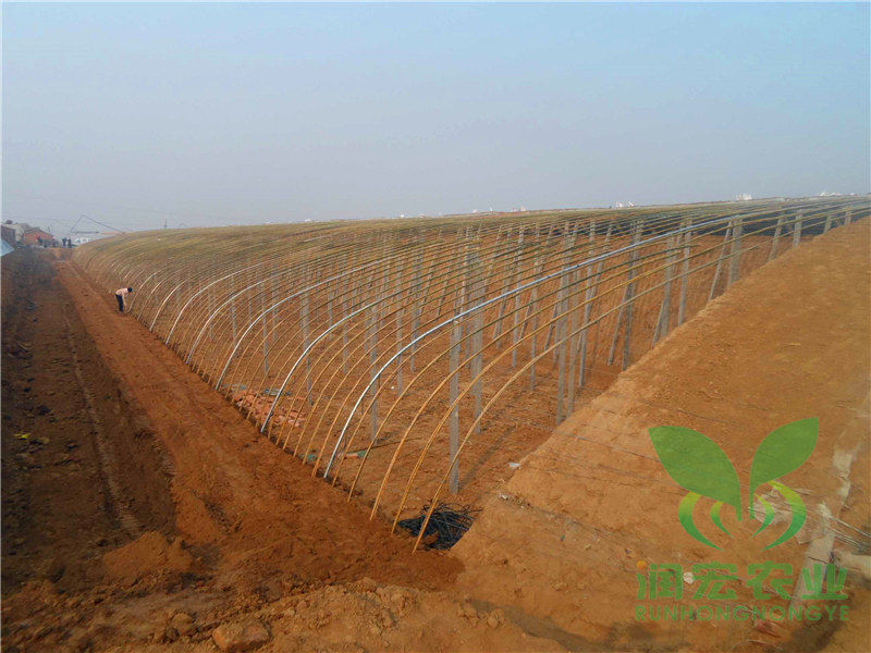 棚面每隔30cm鋪設(shè)一道鍍鋅鋼絲,使整個棚體受力更加均勻,棚體結(jié)構(gòu)更加穩(wěn)固;