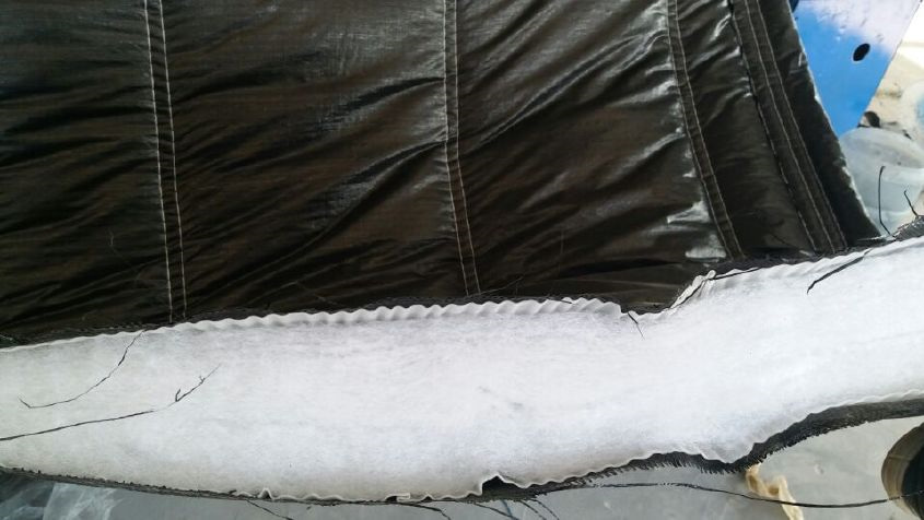 蔬菜防寒大棚棉被是以EPE淋膜為原料,用機(jī)械加工成型的EPE淋膜保溫被,主要保溫材料為羽絨棉,高彈性、不吸水。羽絨棉保溫材料常用厚度1cm~5cm,每平方米重260克~1040克。羽絨棉保溫材料的上表面覆蓋EPE淋膜(塑料布、防雨綢)等防水材料以及牛津布、尼龍布、塑料絲編織布、化纖織造、布化纖無紡布等表面布料中的一種或多種,下底面鋪加強(qiáng)拉力氈。主要材料和下層用專用縫紉機(jī)縫合,再與上層縫合,制作成大棚保溫被。